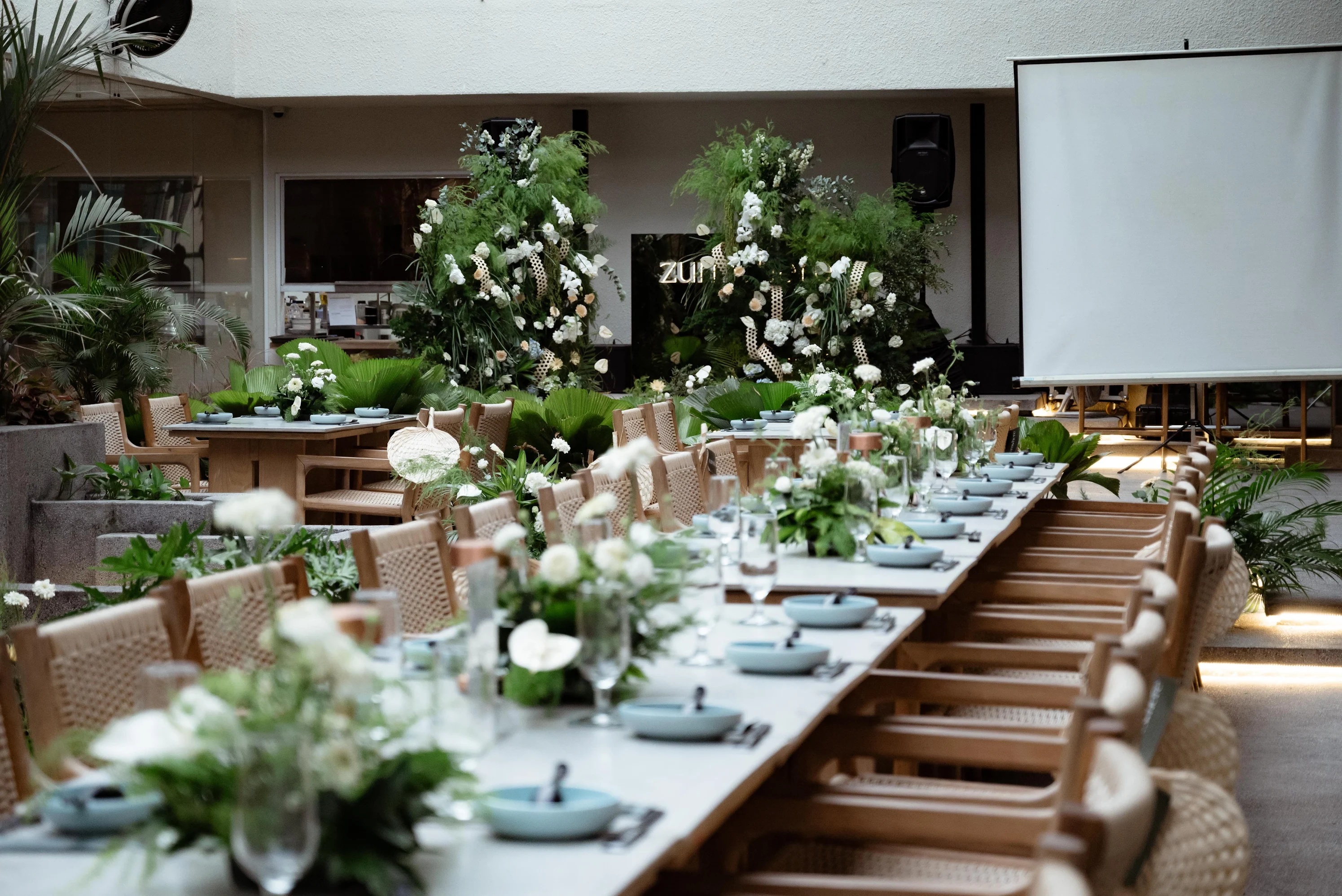 Không gian tiệc cưới lộng lẫy với hoa tươi cao cấp, tạo nên ngày trọng đại hoàn hảo